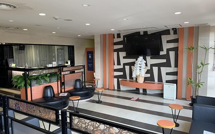 黒い天然石をふんだんに利用したフロントは優雅な雰囲気。